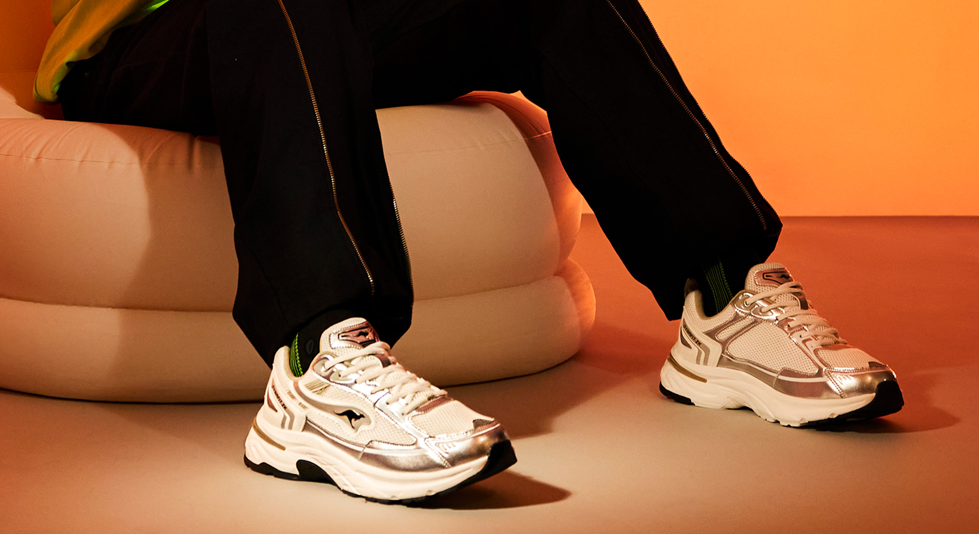 1.來自 2000 年代、兼具復古與科技感的千禧年跑鞋,,鞋面皮革與網眼布材料拼接並加入Y2K球鞋不可或缺的金屬元素,凸顯復古氛圍。