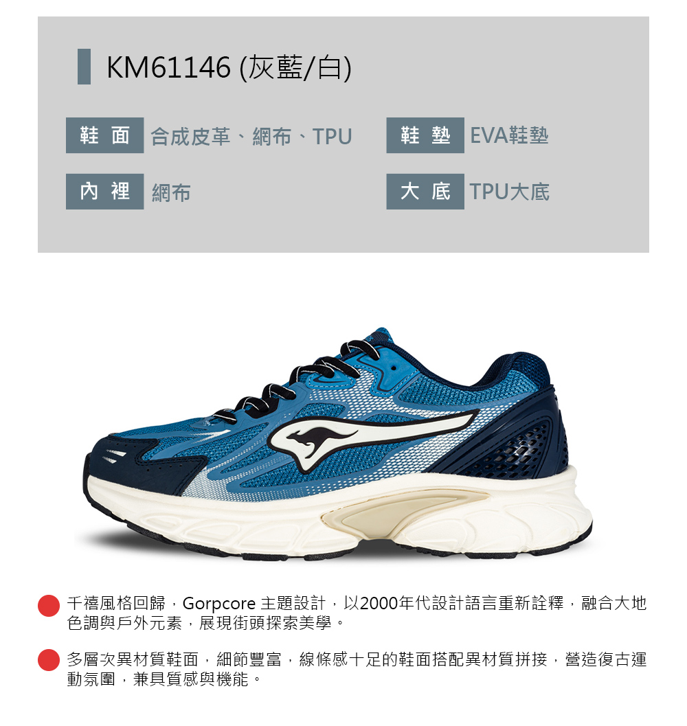 5.商品規格-鞋面:合成皮革、網布丨內裡:網布丨鞋墊:EVA鞋墊丨大底:TPU大底