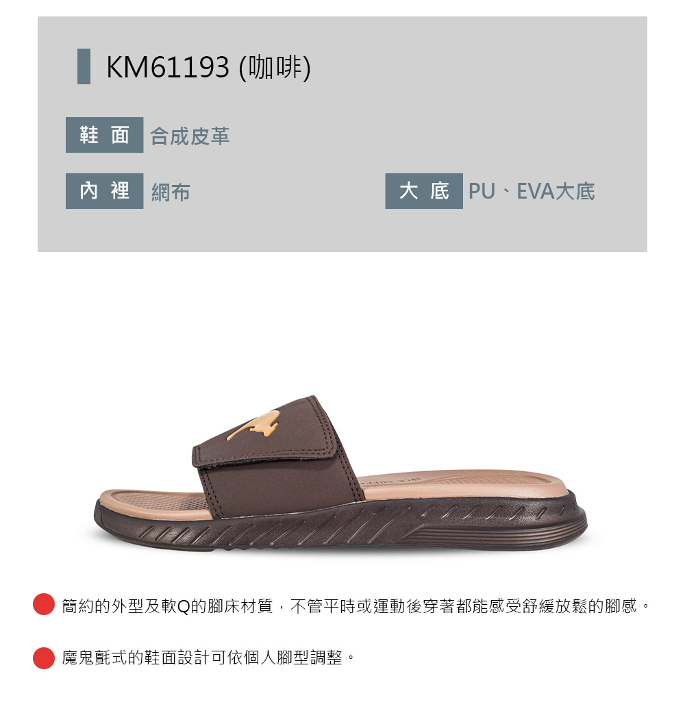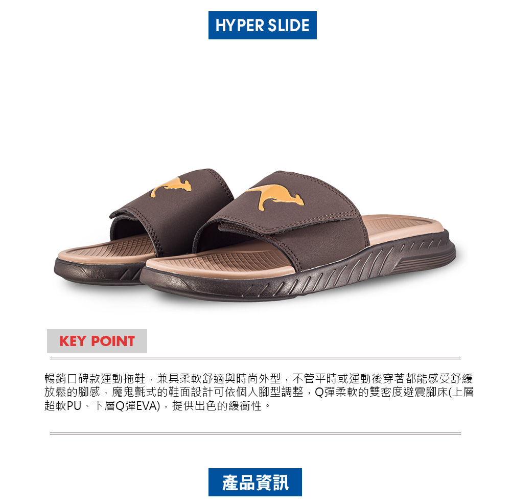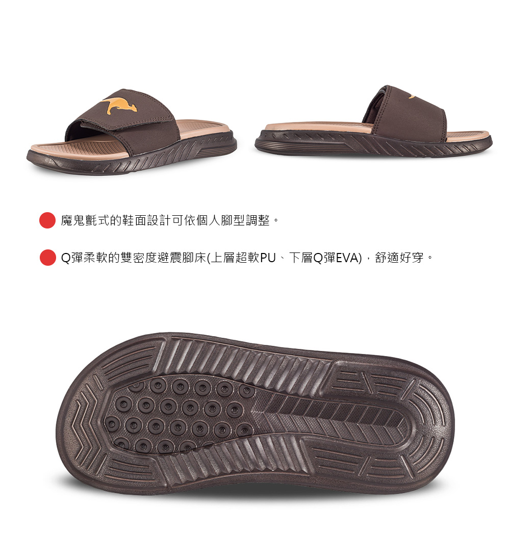 1.簡約的外型及軟Q的腳床材質,不管平時或運動後穿著都能感受舒緩放鬆的腳感。2.魔鬼氈式的鞋面設計可依個人腳型調整。3.Q彈柔軟的雙密度避震腳床(上層超軟PU、下層Q彈EVA),舒適好穿。