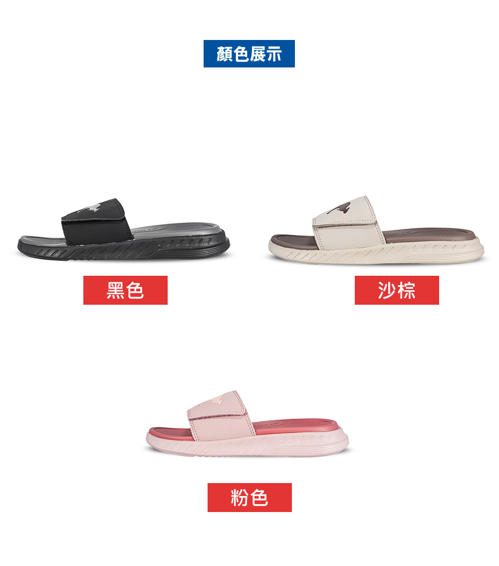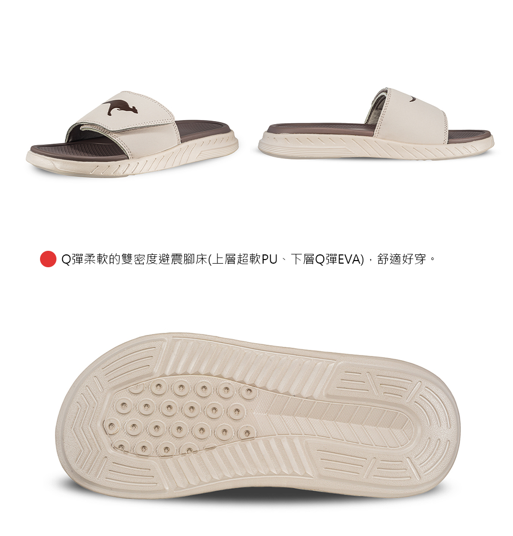 1.簡約的外型及軟Q的腳床材質,不管平時或運動後穿著都能感受舒緩放鬆的腳感。