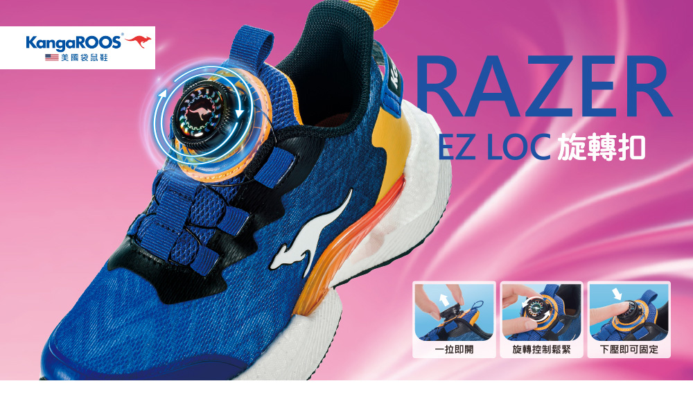 2.快速旋鈕系統,一拉即開,一旋即緊,方便穿脫,增添穿鞋樂趣。