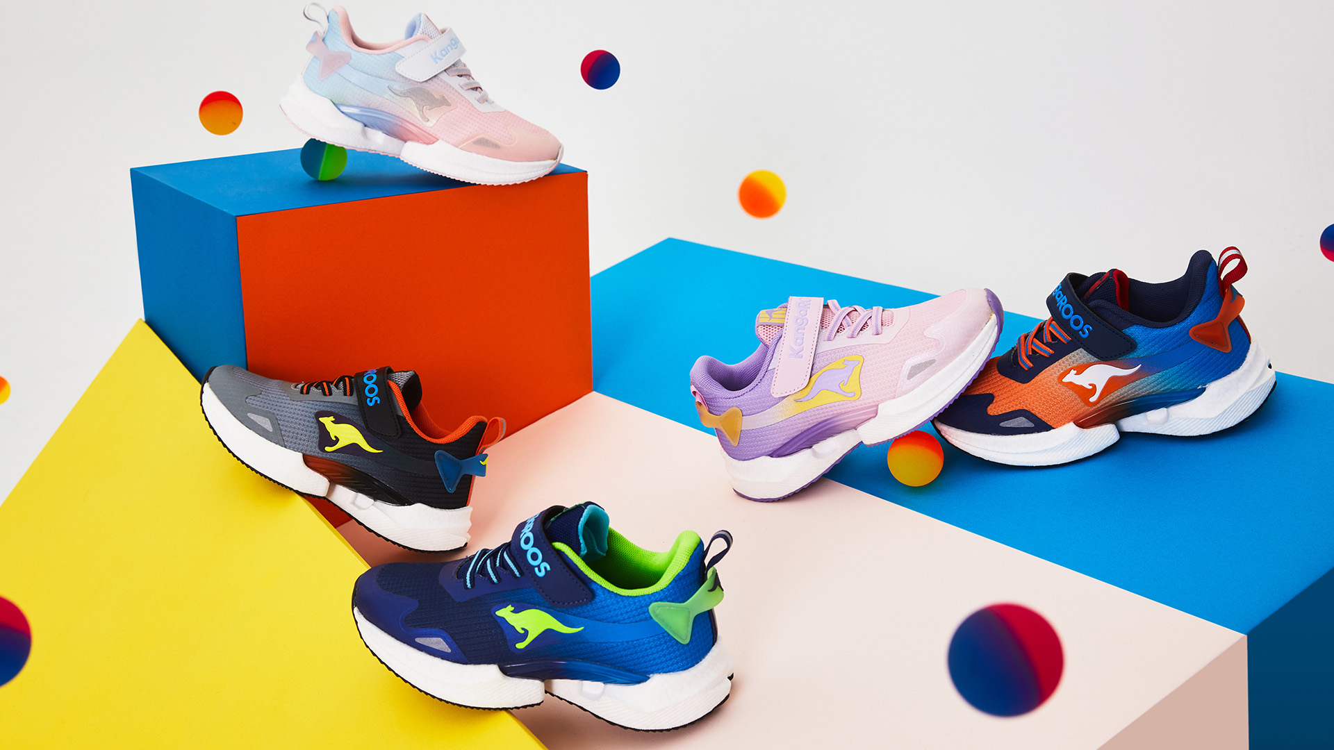 1.專為兒童所設計的跑鞋款式,亮眼的霓虹漸層主題讓鞋款更顯不凡