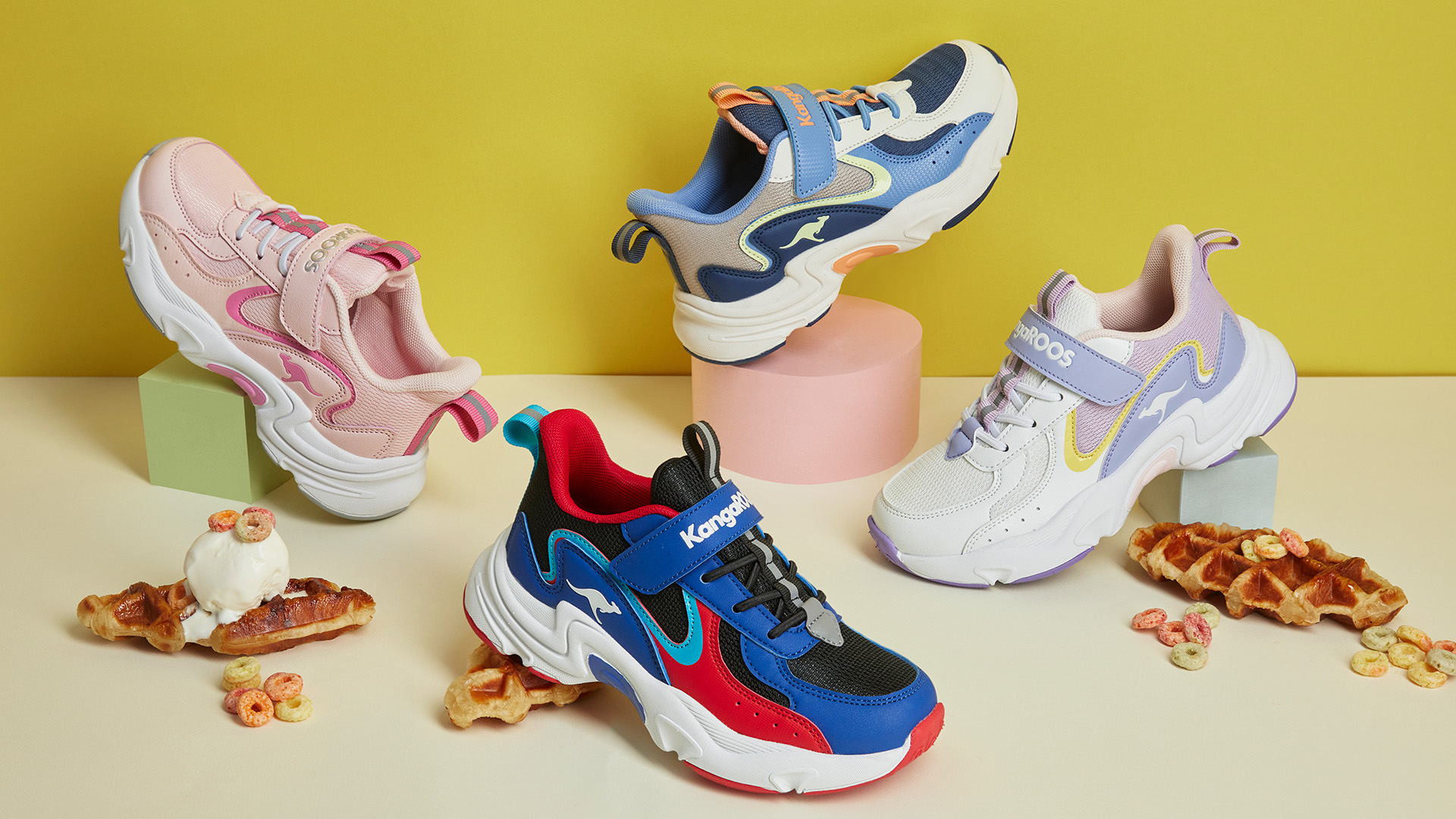 1.以千禧年代跑鞋為設計靈感,專為活潑好動的孩子打造,鞋面波浪起伏線條展現動感與活力。