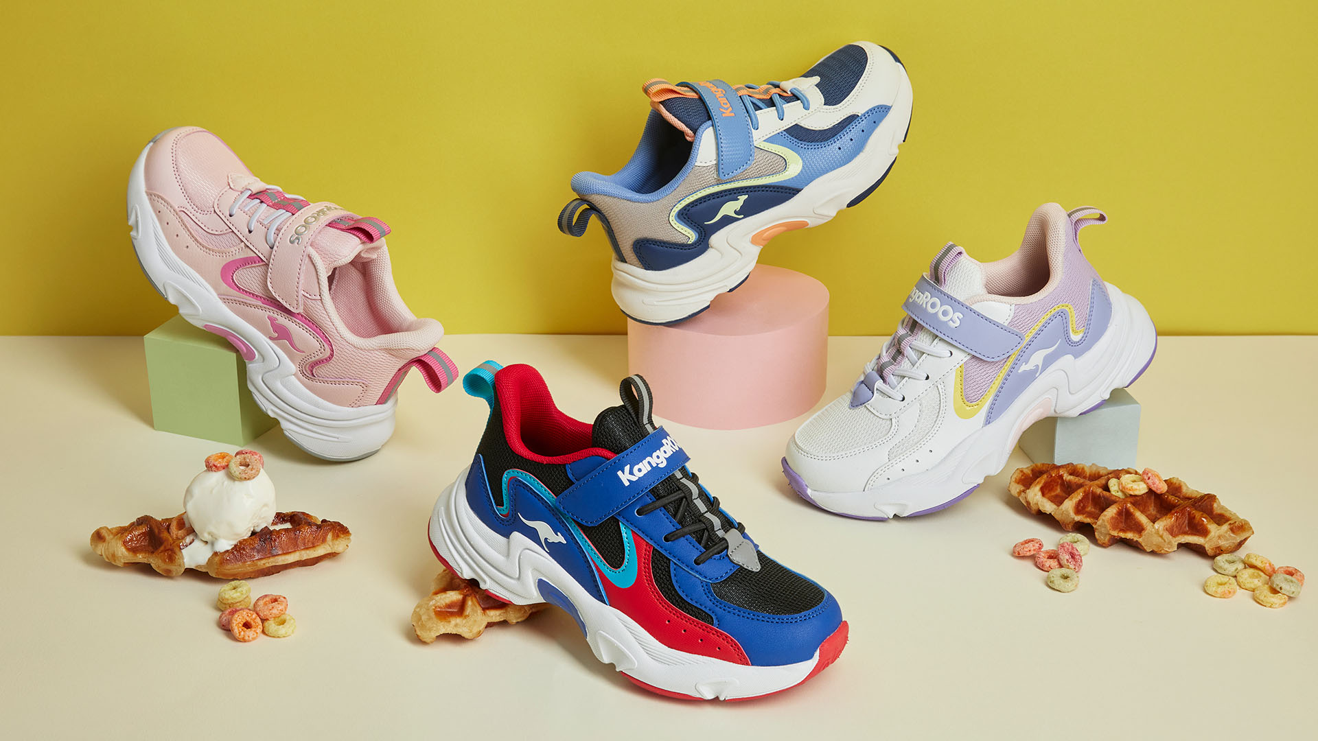 1.以千禧年代跑鞋為設計靈感,專為活潑好動的孩子打造,鞋面波浪起伏線條展現動感與活力。