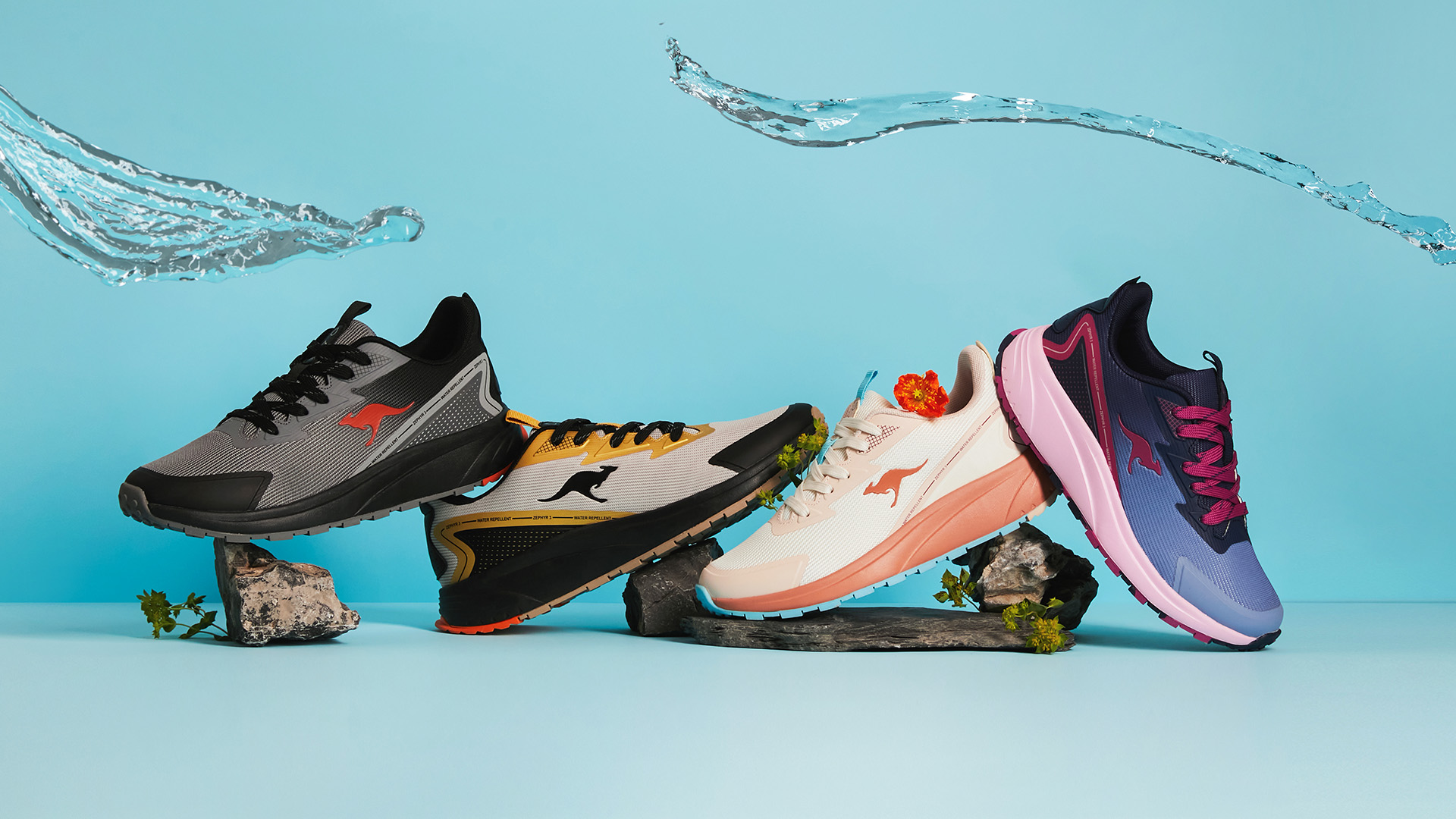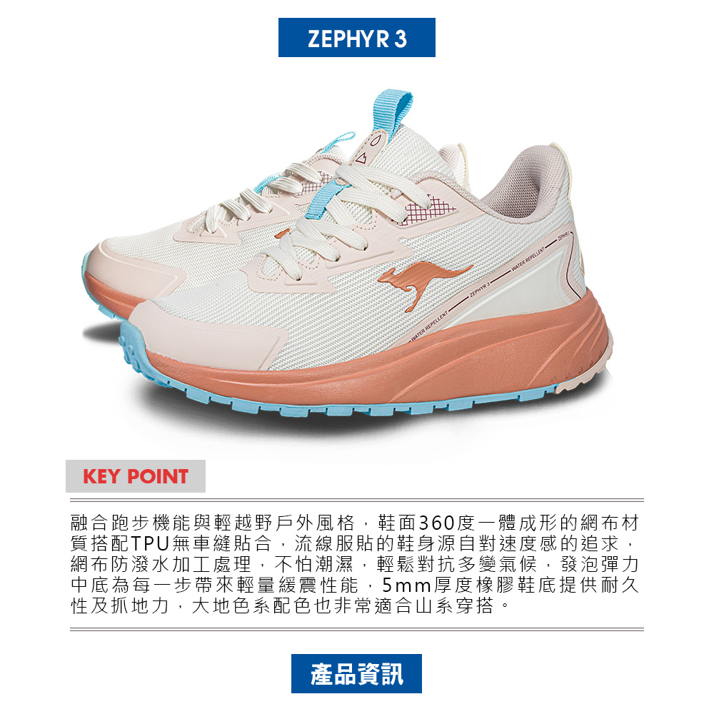 1.融合跑步機能與輕越野戶外風格,鞋面採用360度一體成形的網布材質搭配TPU無車縫貼合,注重速度感的流線貼合鞋身。